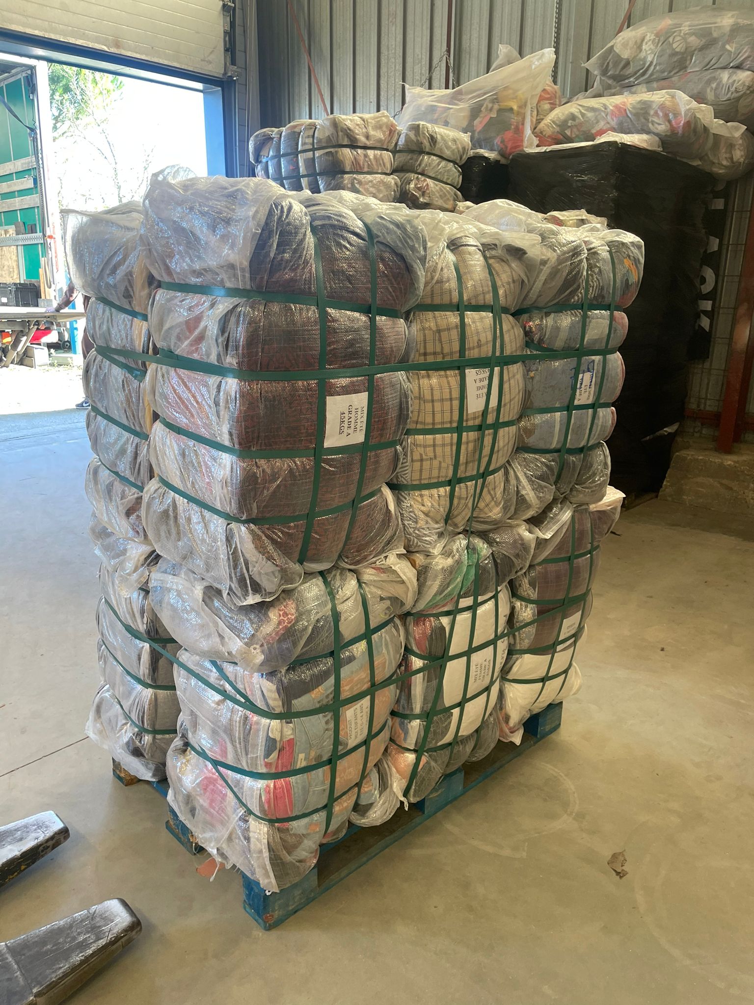 - Description : Ce format est conçu pour les commandes en gros, parfait pour les grandes friperies, les détaillants et les clients professionnels. Chaque palette contient un assortiment diversifié de vêtements, incluant des pièces de marque et des articles uniques, ce qui permet d’enrichir considérablement votre offre. Nos palettes sont soigneusement empilées et sécurisées pour assurer leur intégrité lors du transport.